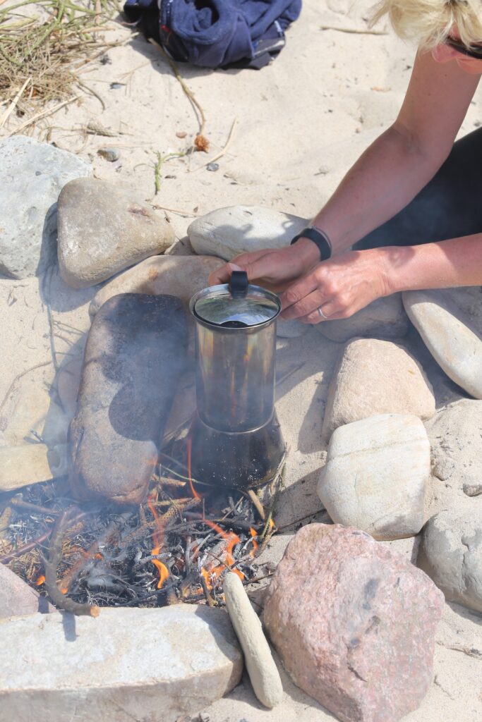 Wir kochen gemeinsam am offenen Strandfeuer, teilen Gespräche, Stille und Lachen.