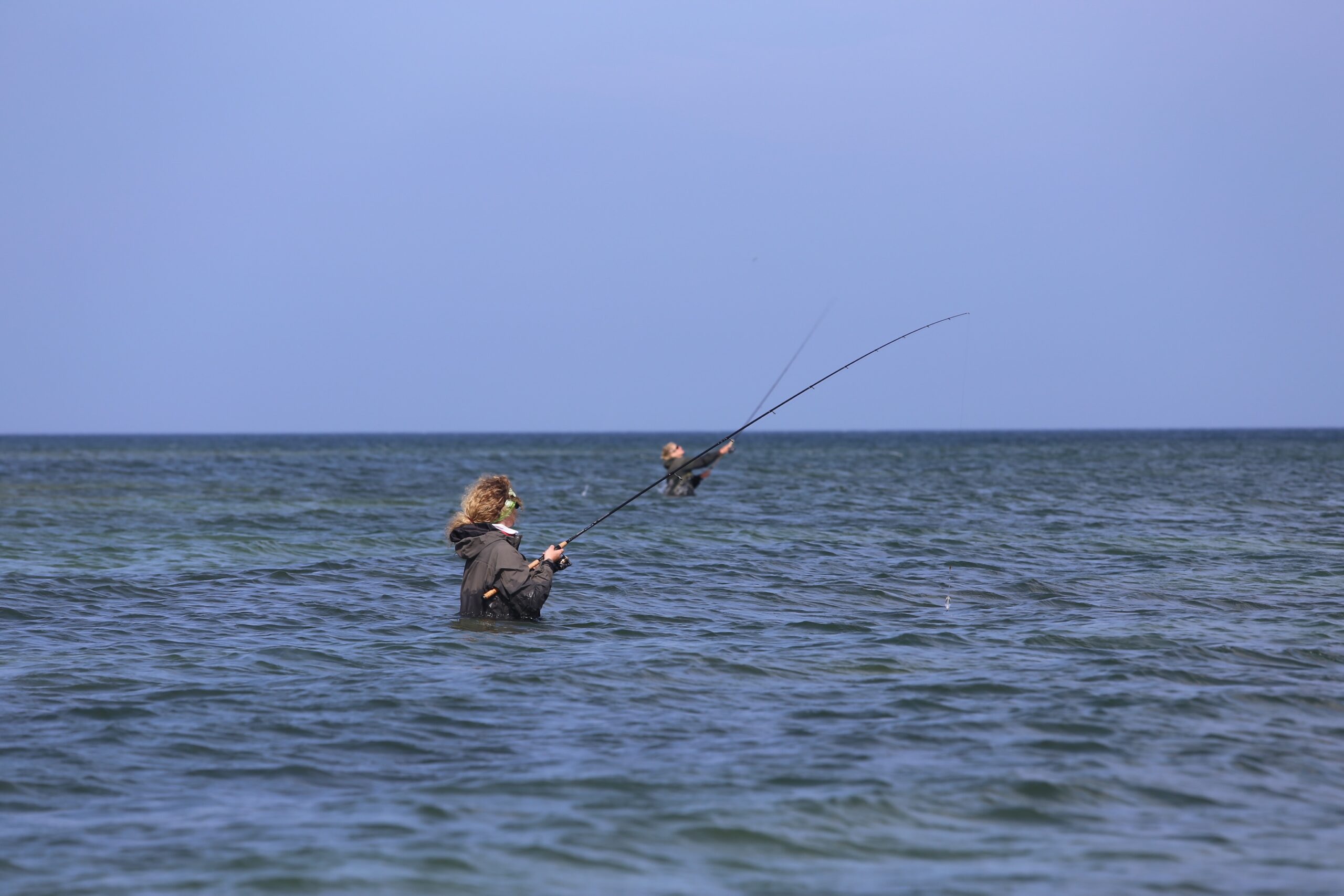 Wenn du magst, lernst du das Angeln auf Meerforellen – stehst in der Wathose draußen im Meer, spürst Wind und Wasser, und vielleicht gelingt dir der Fang eines dieser wilden Fische.