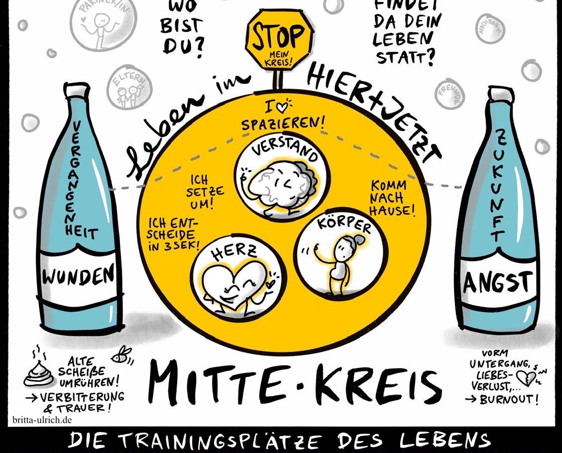 Wir nutzen dazu Bilder und Methodiken aus meinen Büchern, u. a. „Die Mitte-Kreis-Methodik“, „Das Rad des Lebens“, „Das Feuer des Lebens“, „Die Visitenkarte deines Lebens“ sowie weitere.